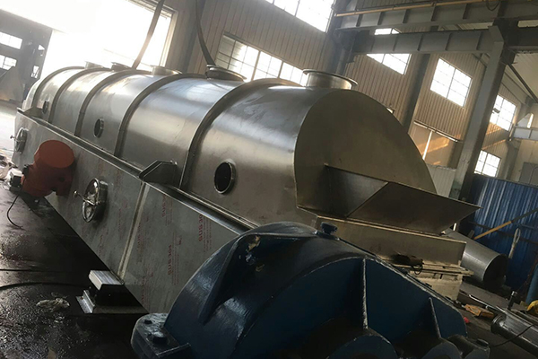 物料自進料口進入機內(nèi),在振動力作用下,物料沿水平流化床拋擲,向前連續(xù)運動,熱風(fēng)向上穿過流化床同濕物料換熱后,濕空氣經(jīng)旋風(fēng)分離器除塵后由排風(fēng)口排出,干燥物料由排料口排出。